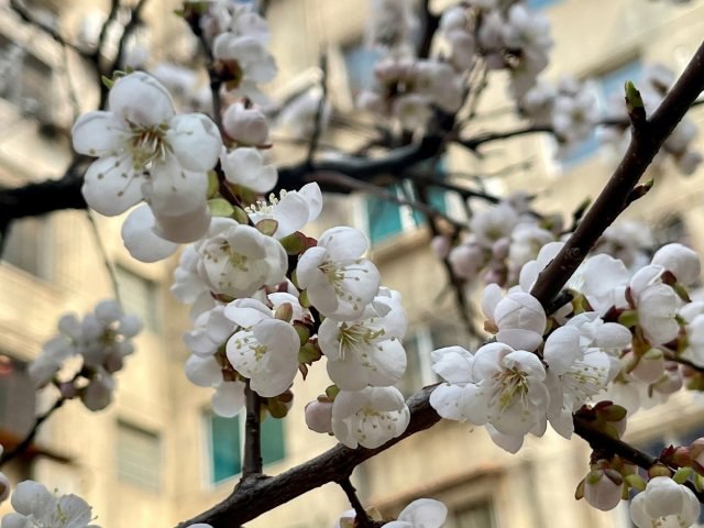 #网友语录 熊猫姐 好美! 转@七禧 多年前无意扔到老妈家楼下空地的一枚杏核,去年已经能收获几斤小甜杏了,今年又开了满树的花。。。小区菜园里忙春耕的老太太们连免费鸡蛋都不去领了,干完活坐在花树下憧憬着今年能收多少杏
